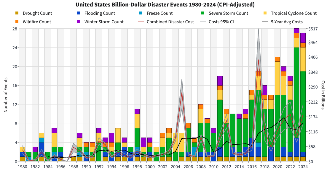 The frequency of storm-related weather and climate disasters exceeding $1 billion USD in damages has risen markedly, reflecting the growing impact of extreme weather events…